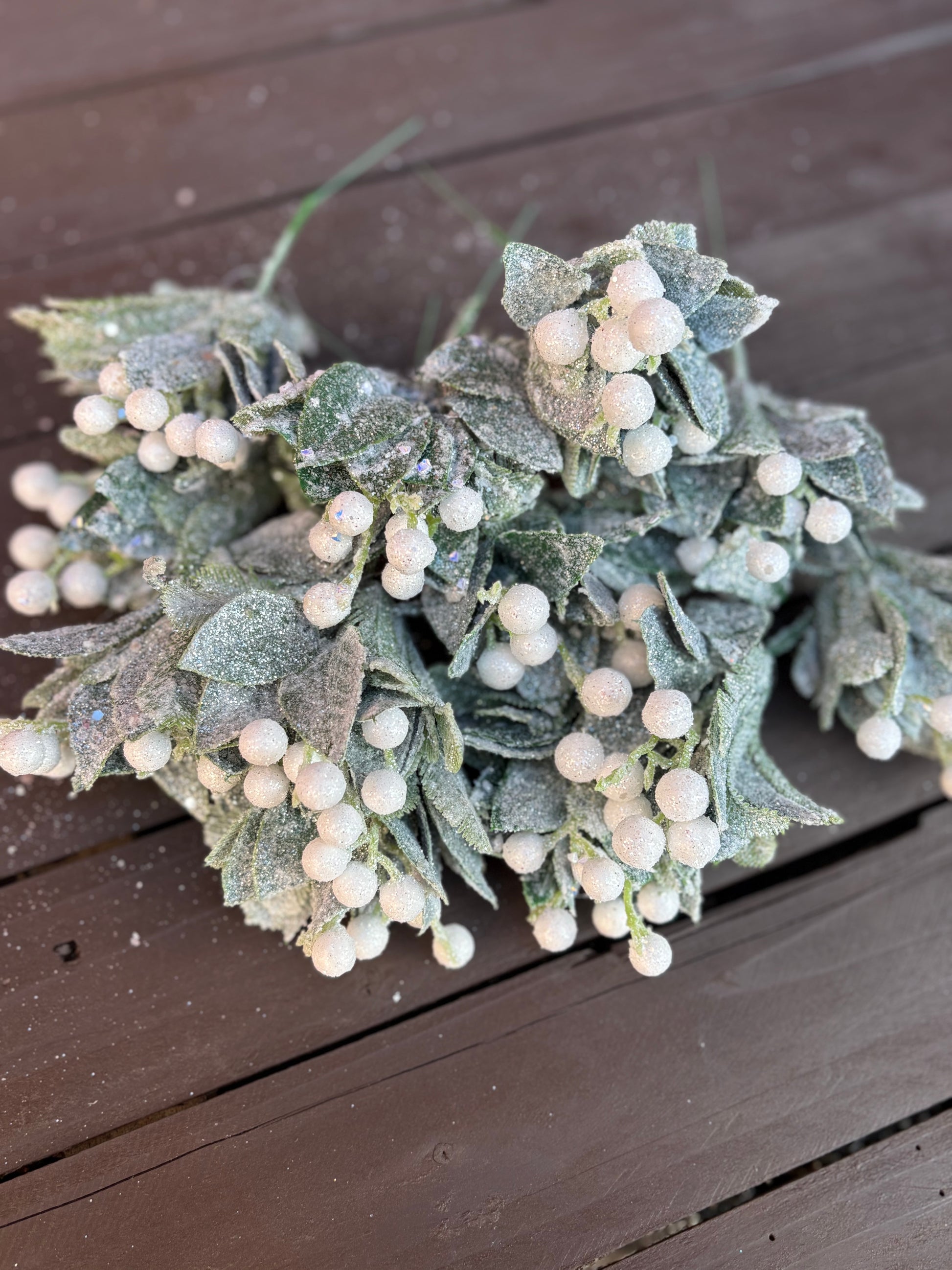 18cm GLITTERED MISTLETOE PICK GREEN/WHITE pk12