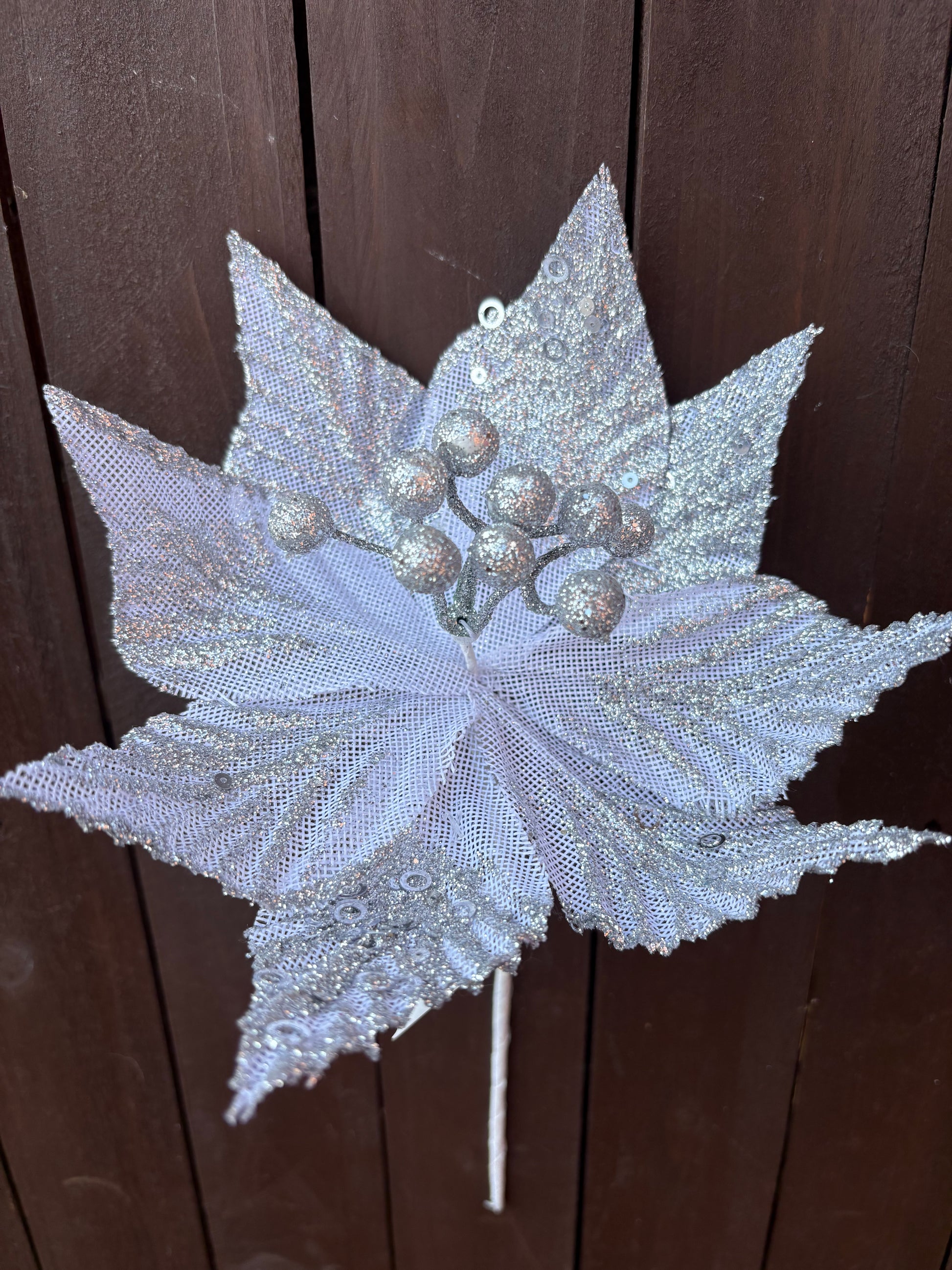 25cm SINGLE HESSIAN POINSETTIA WHITE