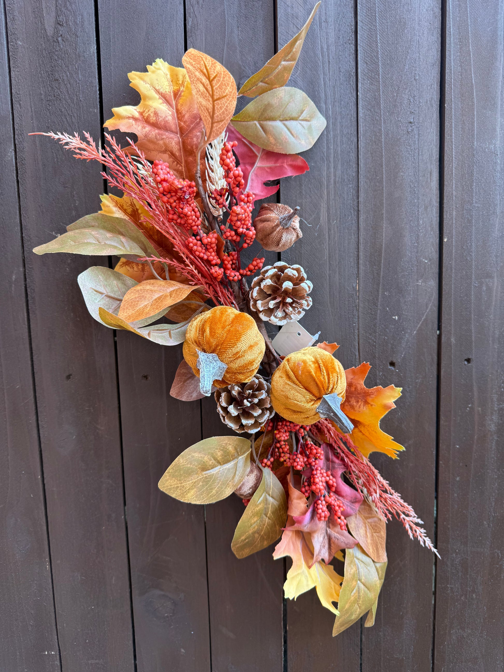 58cm AUTUMN SWAG MIX FOLIAGE PUMPKIN PINE CONE