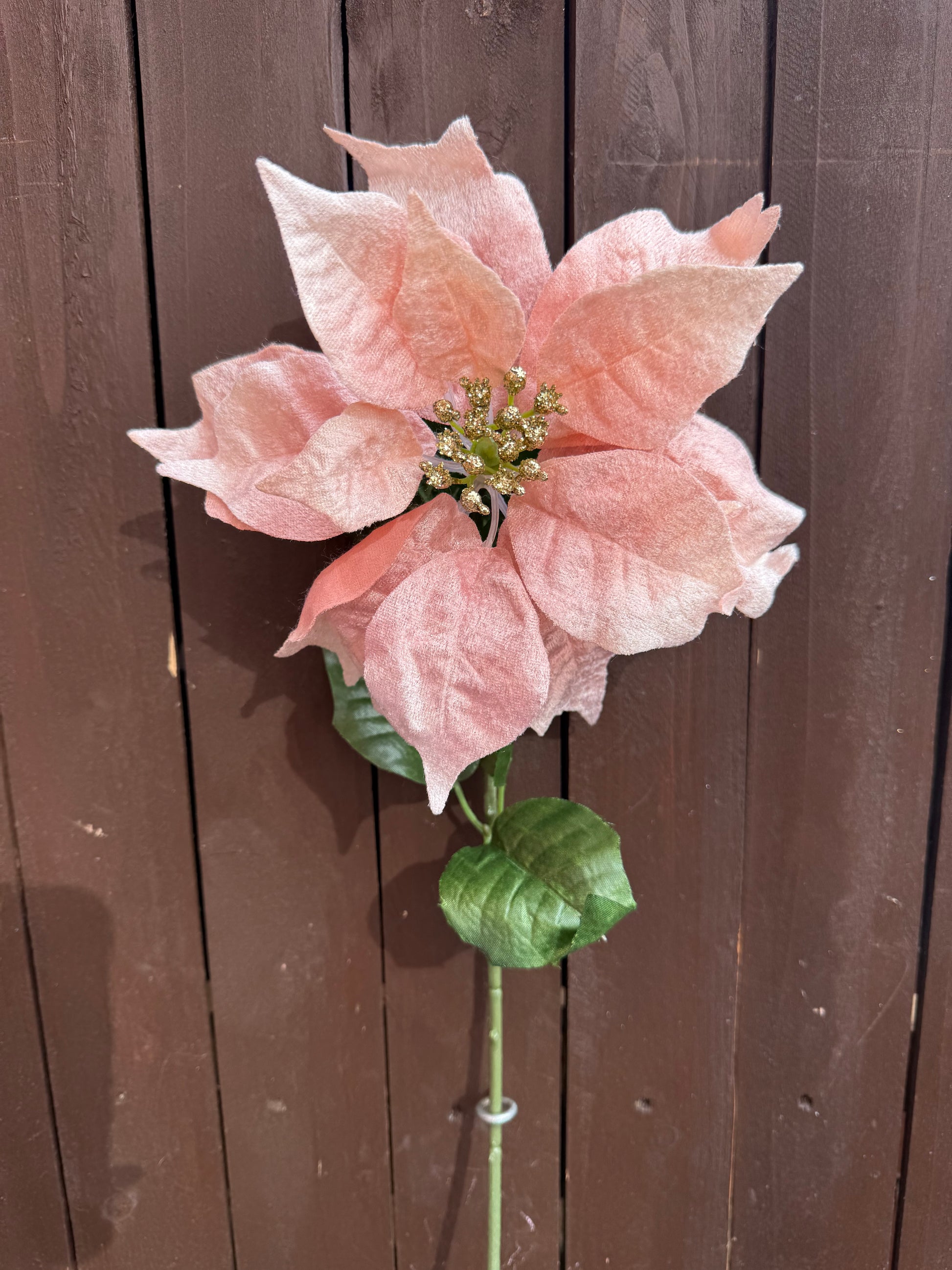 GLITTERED CENTRE VELVET POINSETTIA PINK/GOLD