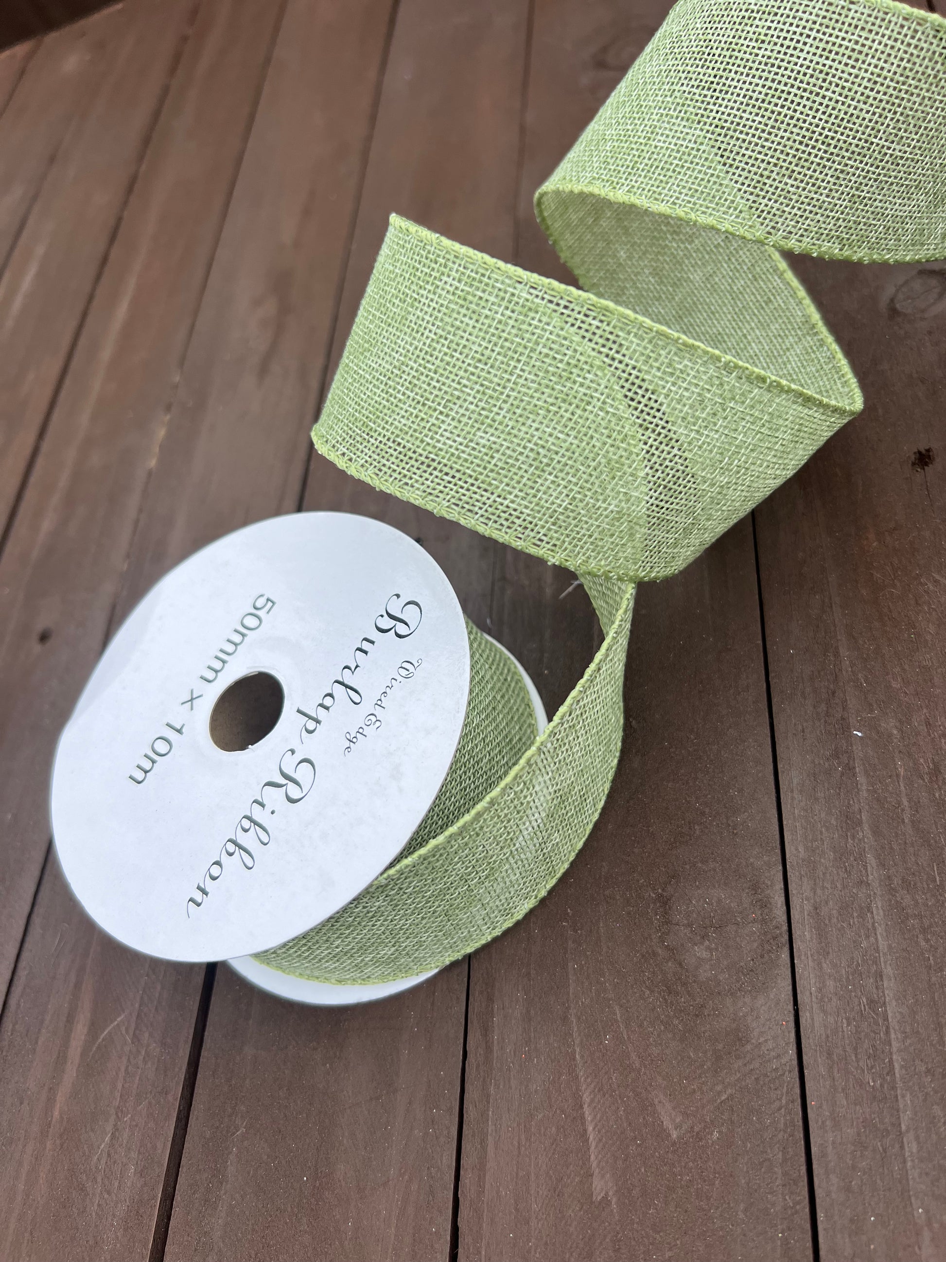 JUTE RIBBON WIRED EDGE 50mm x 10m OLIVE GREEN