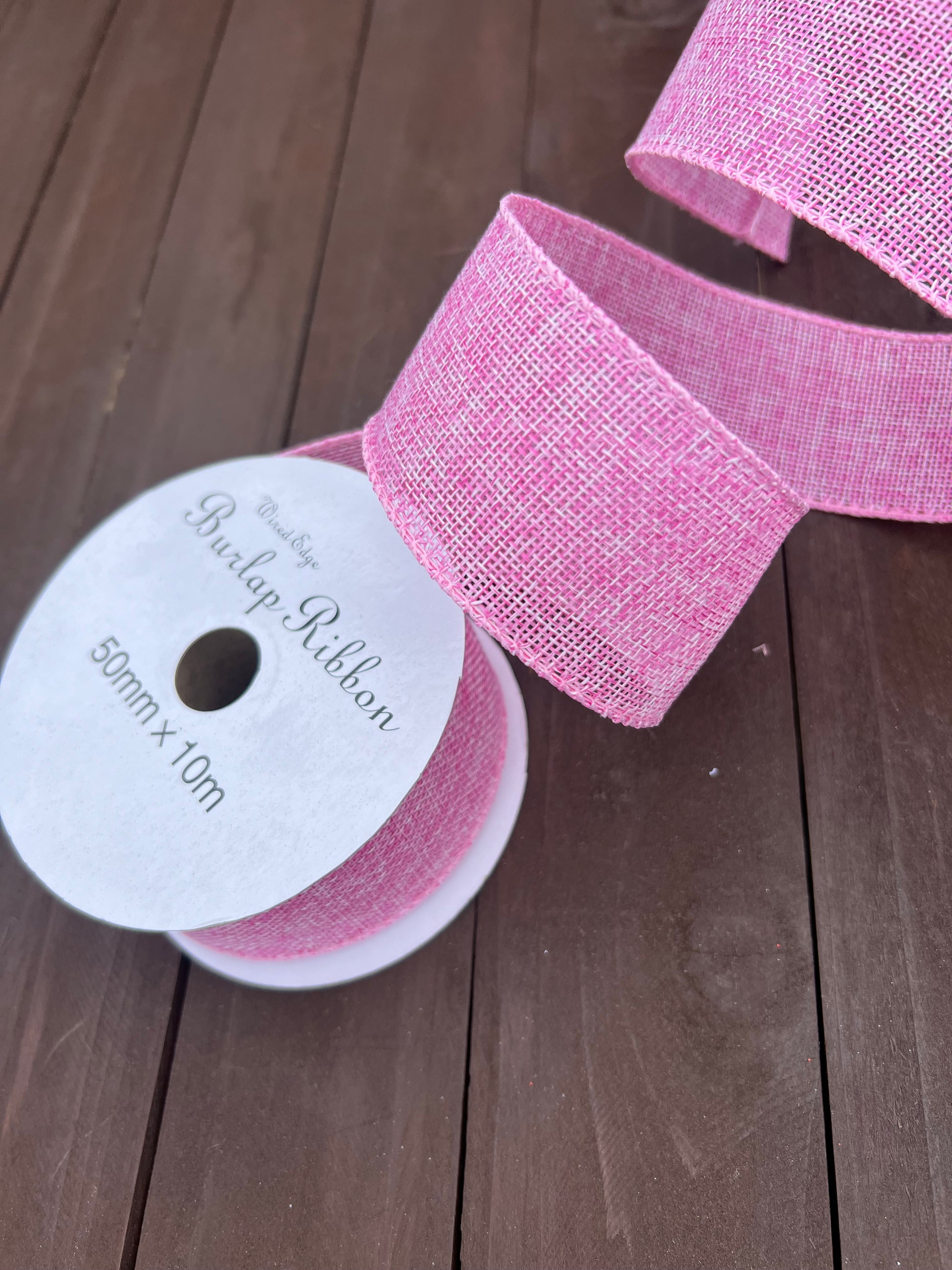 JUTE RIBBON WIRED EDGE 50mm x 10m PINK