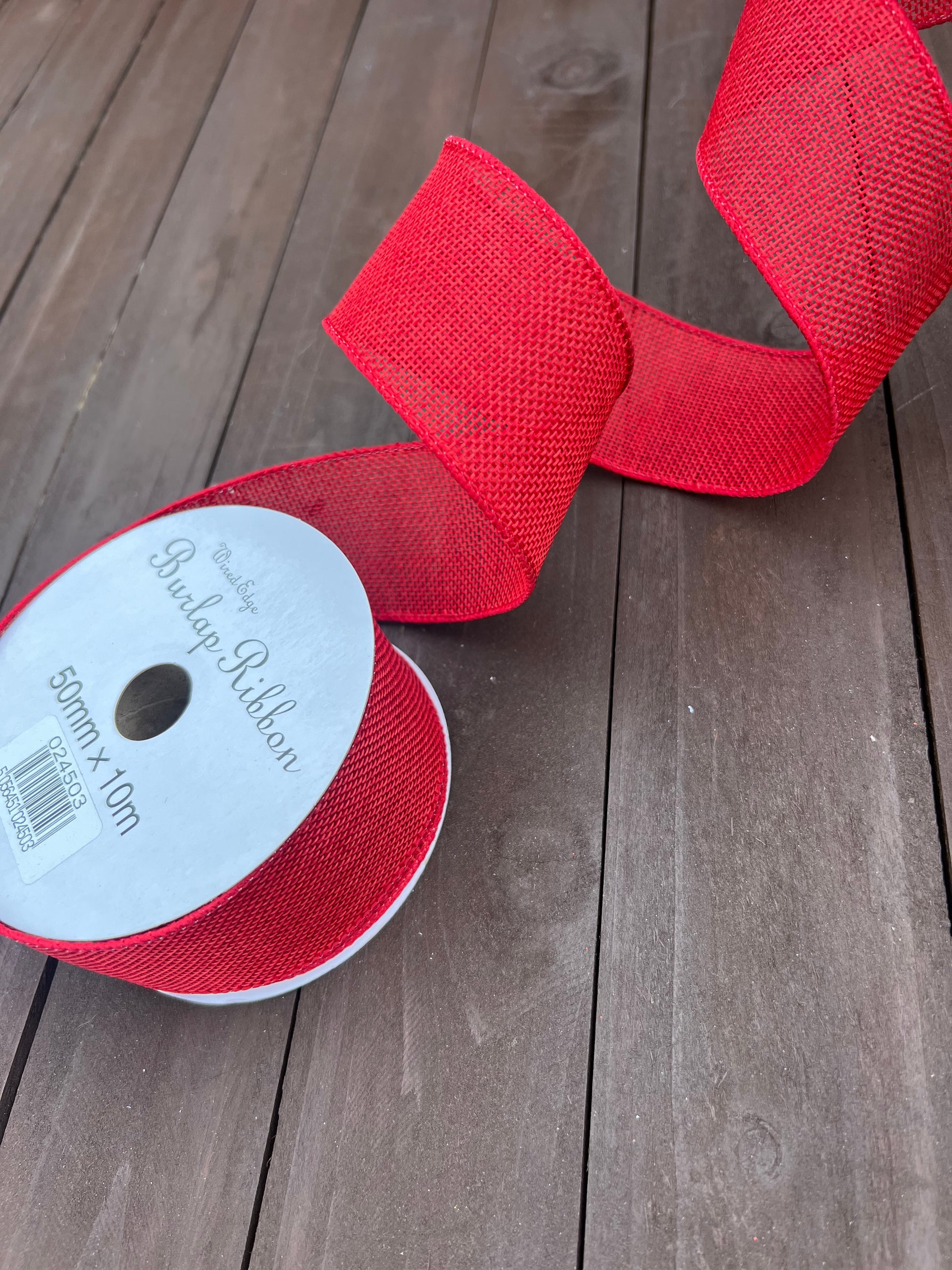 JUTE RIBBON WIRED EDGE 50mm x 10m RED