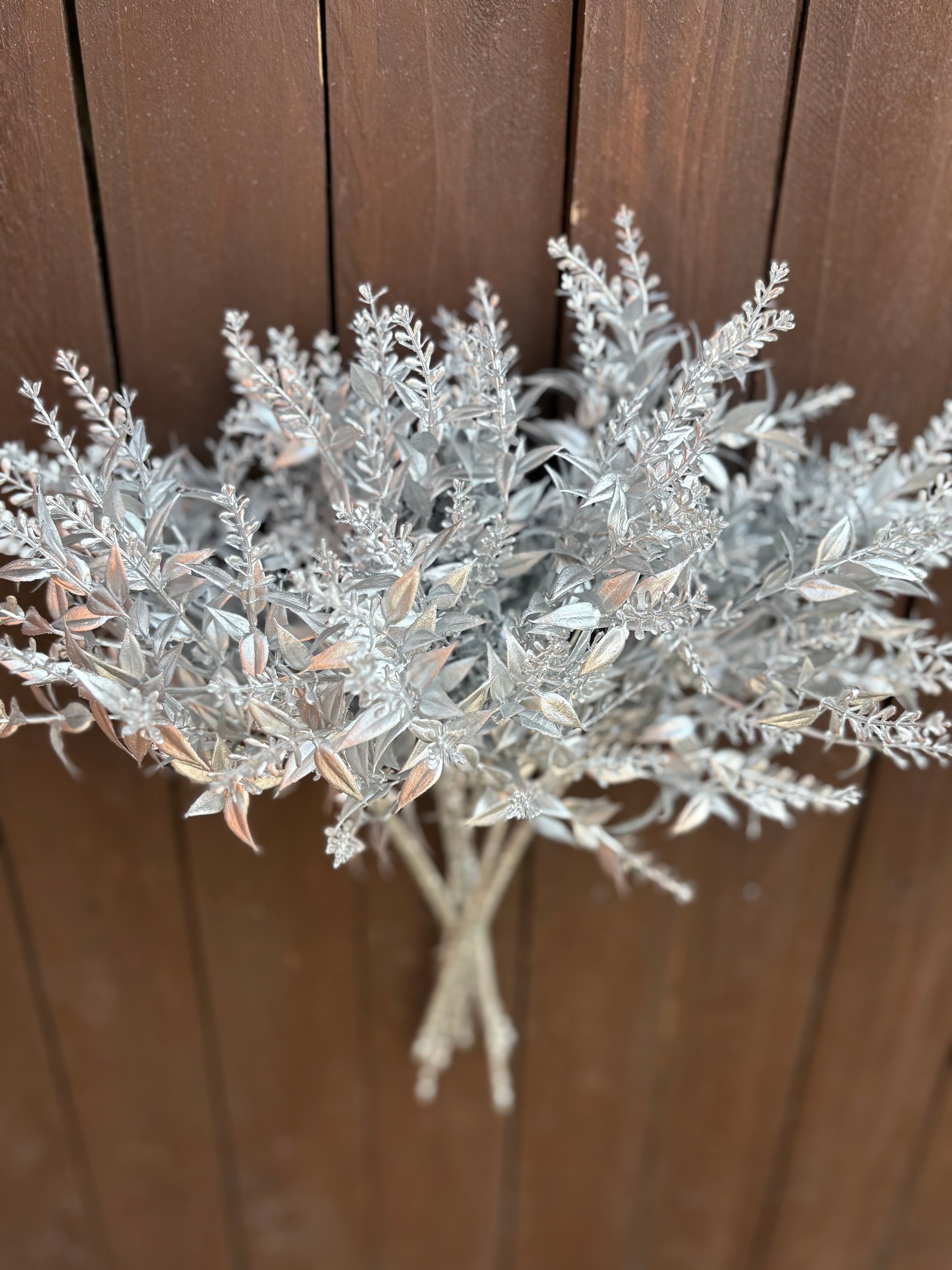 METALLIC HARVEST LEAF SPRIG SILVER (10pcs)
