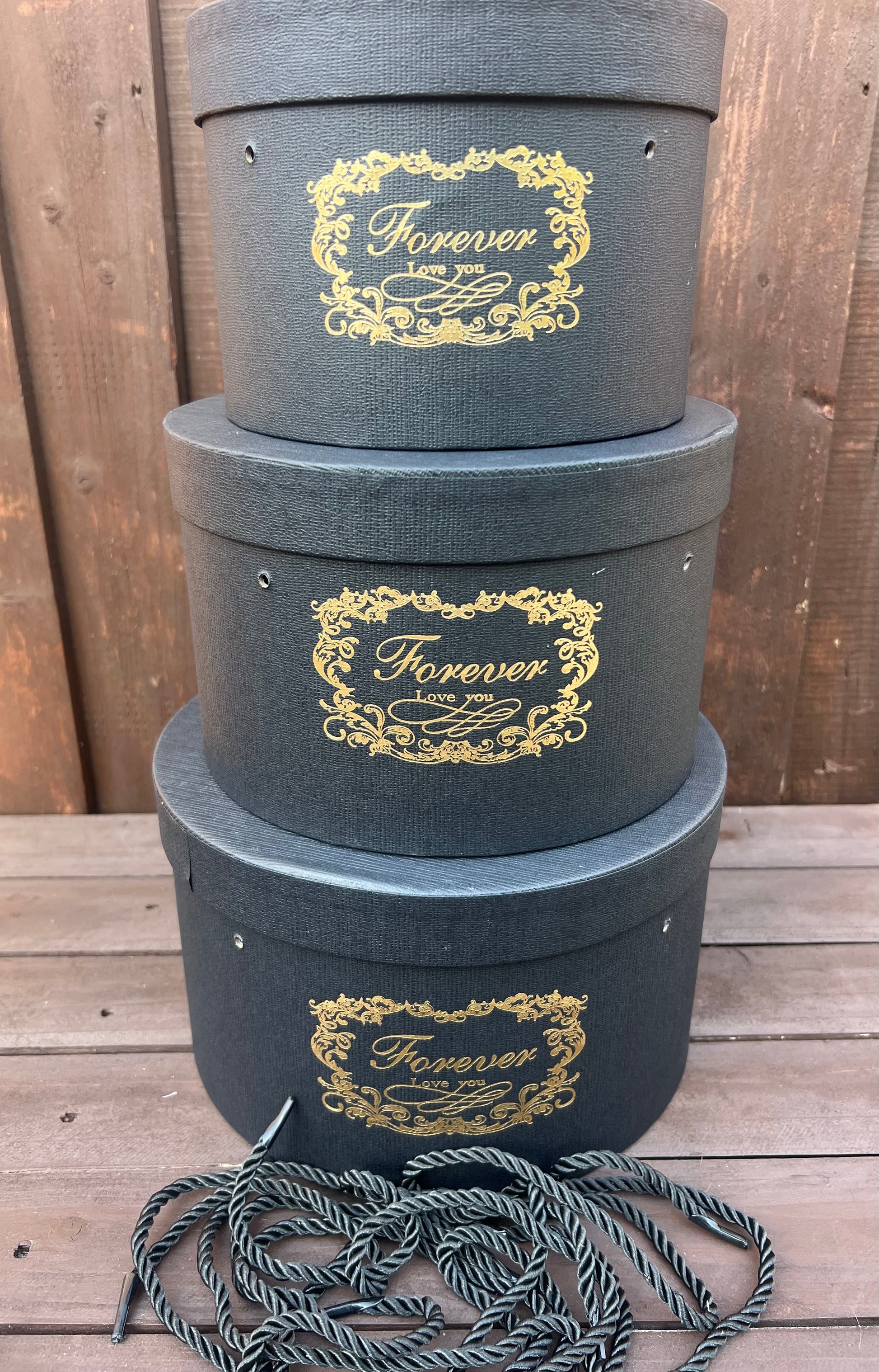 SET OF 3 FOREVER LOVE HAT BOXES BLACK