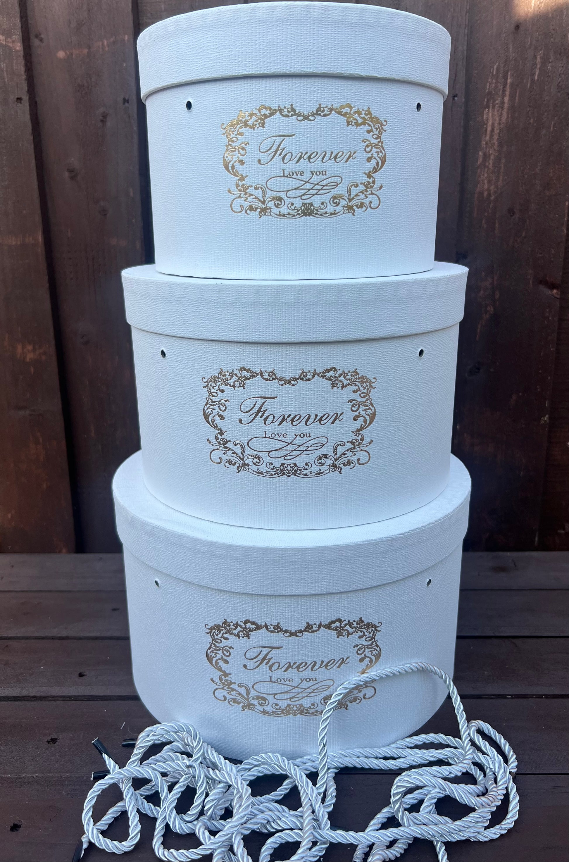SET OF 3 FOREVER LOVE HAT BOXES WHITE/IVORY