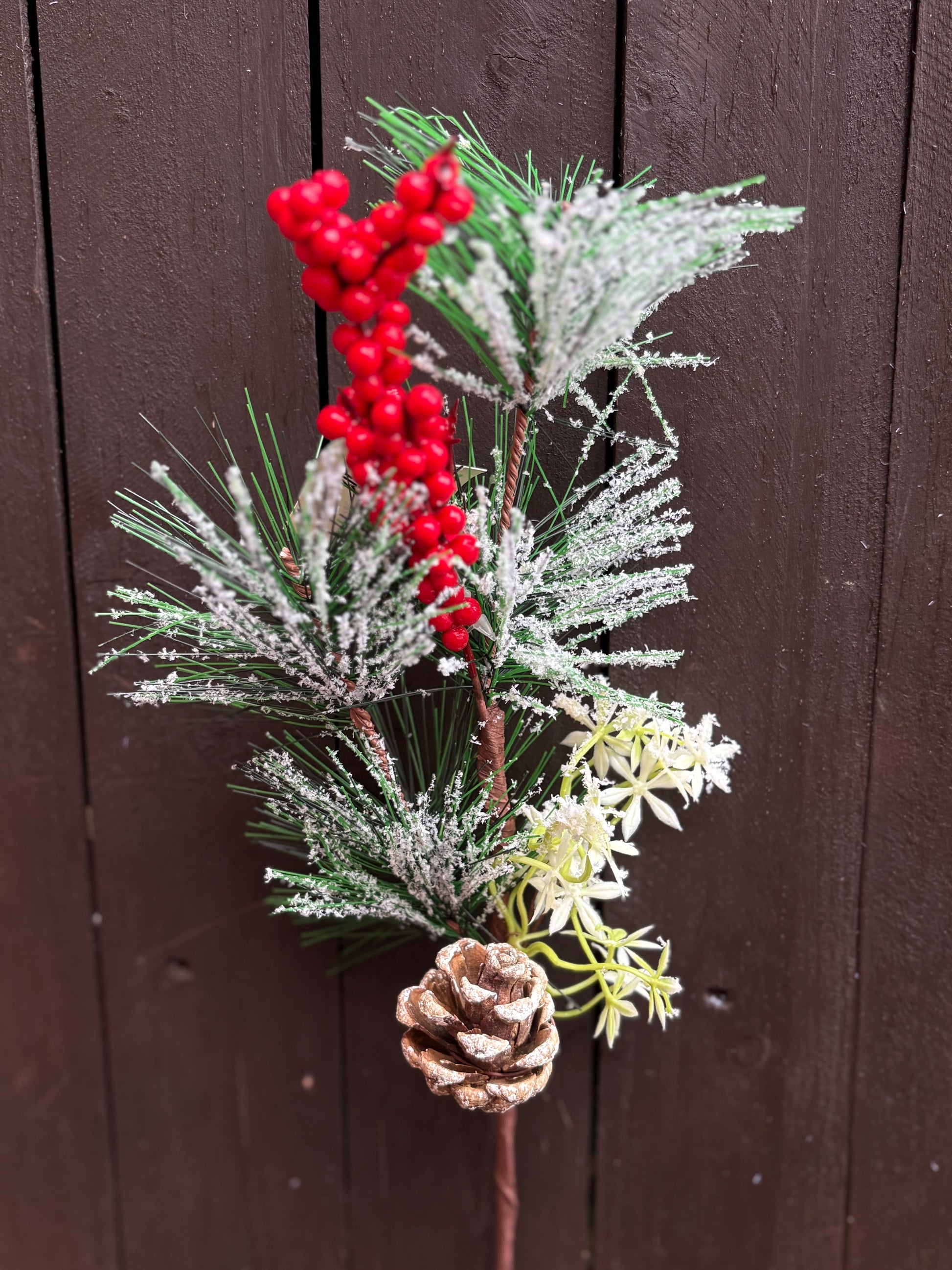 SNOWY NEEDLE PINE CLUSTER BERRY FOLIAGE